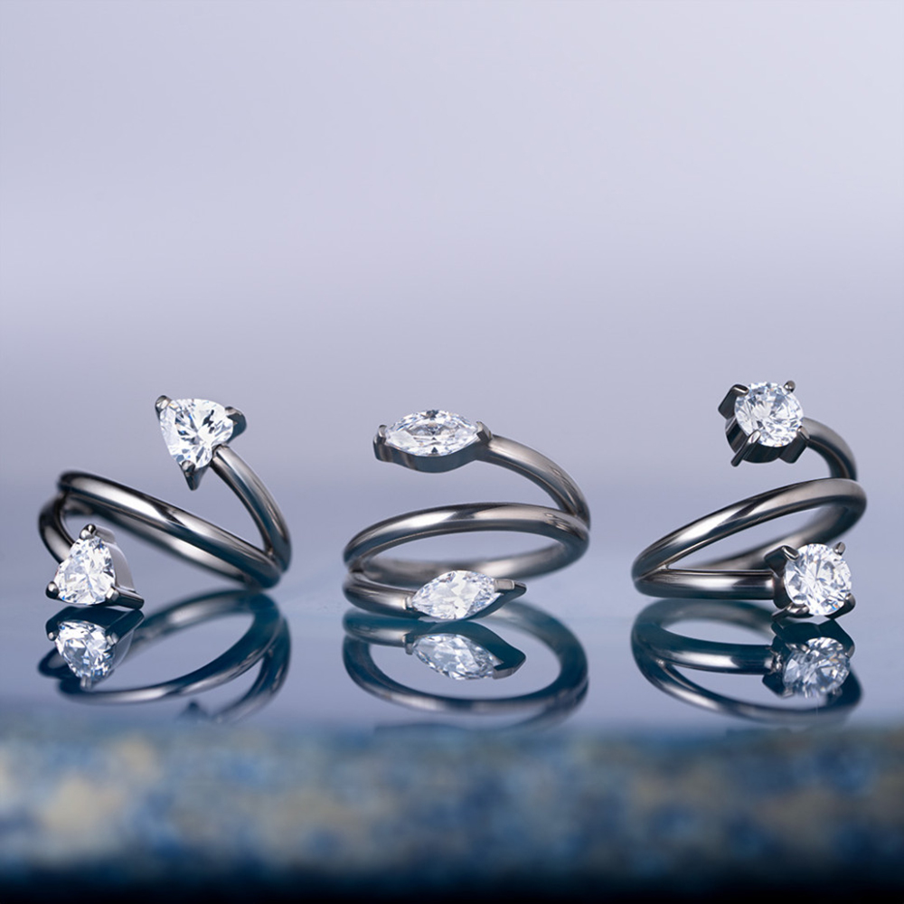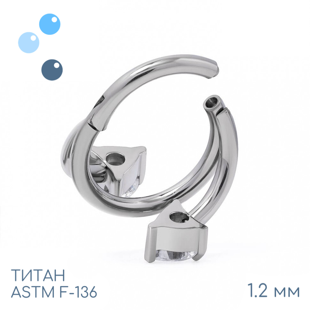 Кольцо-кликер из титана марки ASTM F-136, украшено фианитами в форме сердца в лапках (НЕ откручиваются)